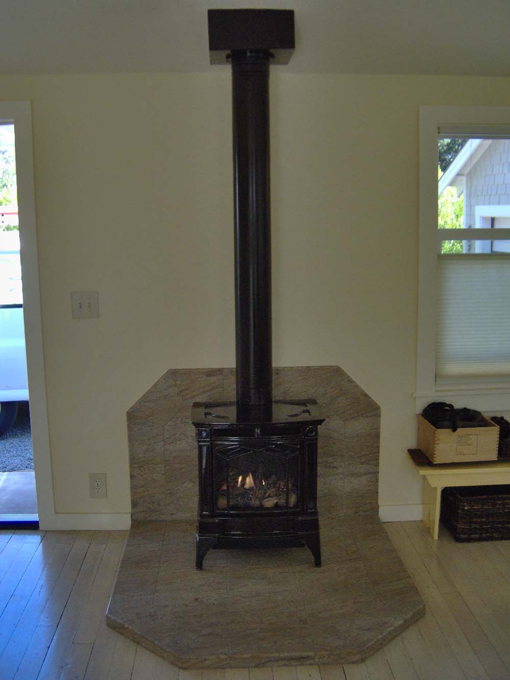 Napa Valley Hearth has installed free standing stoves for the last 30 years. A free-standing stove is a great way to install a heating source in the home. Free standing stoves are offered in both contemporary and traditional styles. In the Napa Area, direct vent gas stoves are the most popular choice for residence. Direct vent free standing stoves venting systems can be routed through the ceiling to the roof or through an exterior wall. Many customers now are adapting a wood stove flue system to a direct vent free standing stove flue system. These customer have an existing wood stove, which has limited use due to the restrictions on wood burning. Installation of a new gas stove allows the home owner to utilize the existing area set up for a wood stove without the need to re-design the space. The existing flue is adapted for use with a gas stove, no need for additional penetrations through the roof or repairs to roof where once a wood flue stood.
